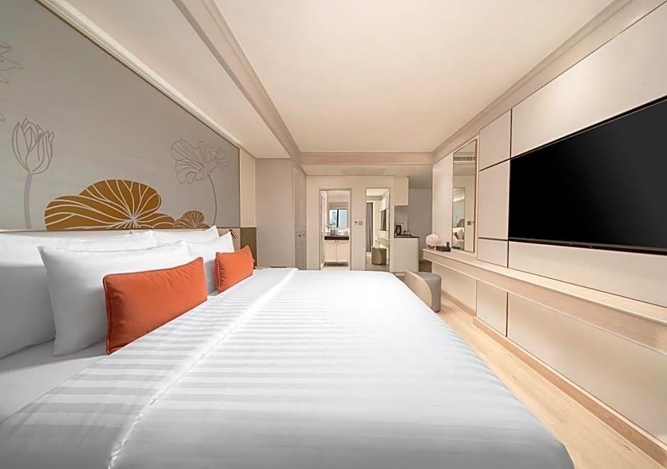 Suite Pool Access (New Wing) is 753 square feet and includes either a king-size bed 150-183 width or 2 single beds 80-130 width plus desk, satellite tv , cable tv, hairdryer, safe, bathrobes, and slippers.