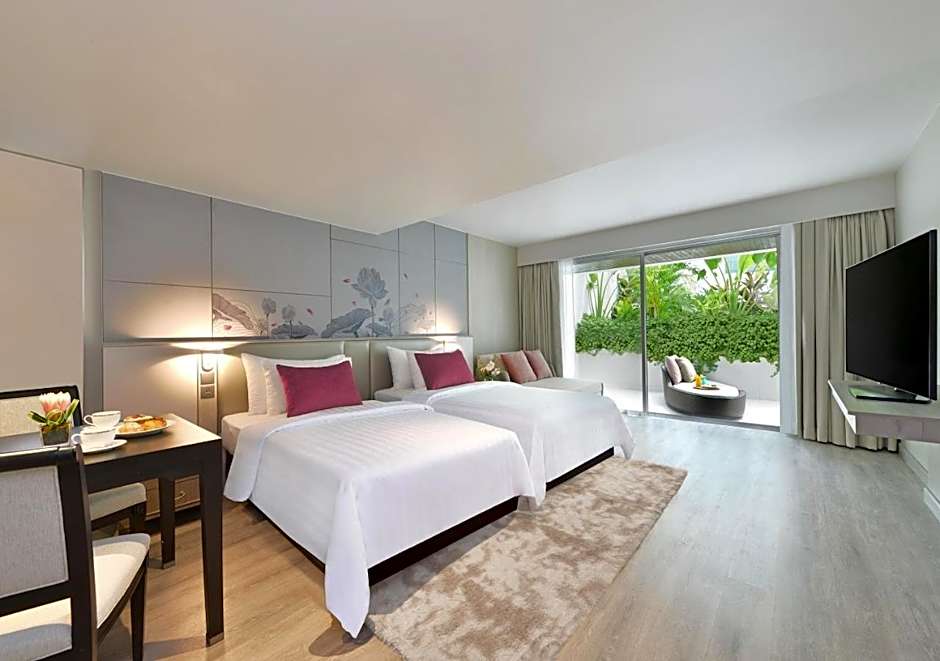 This twin or double room is located in the Greenery Wing and features pool views from the 1-6th floors.
